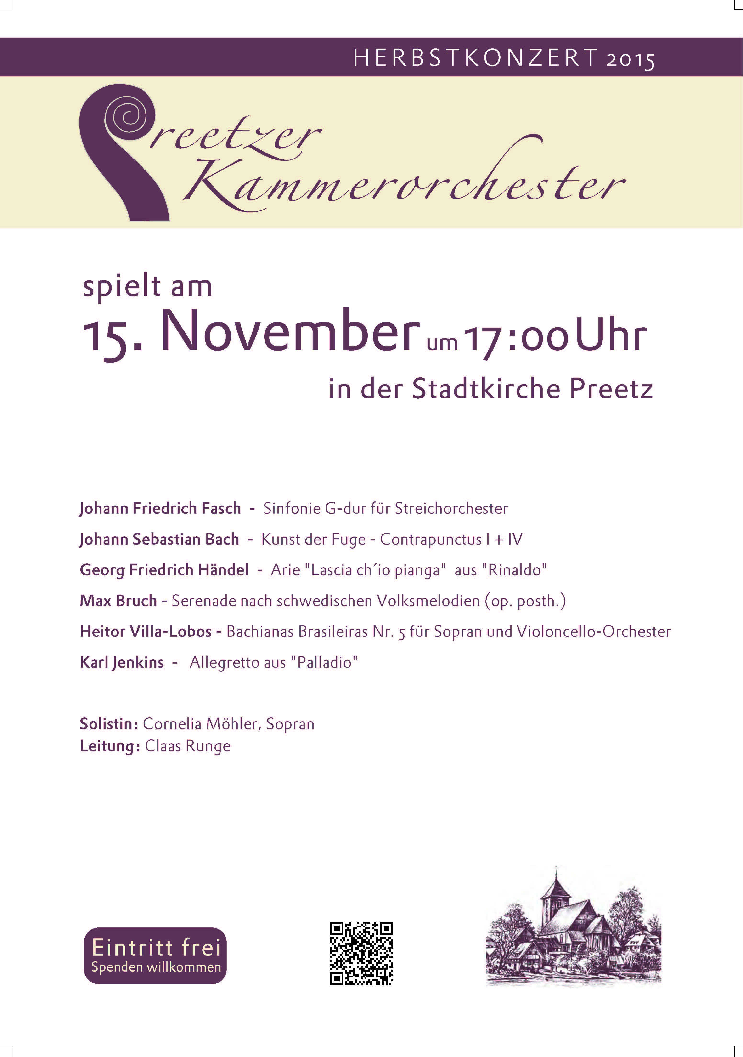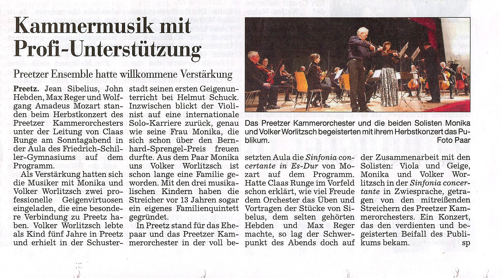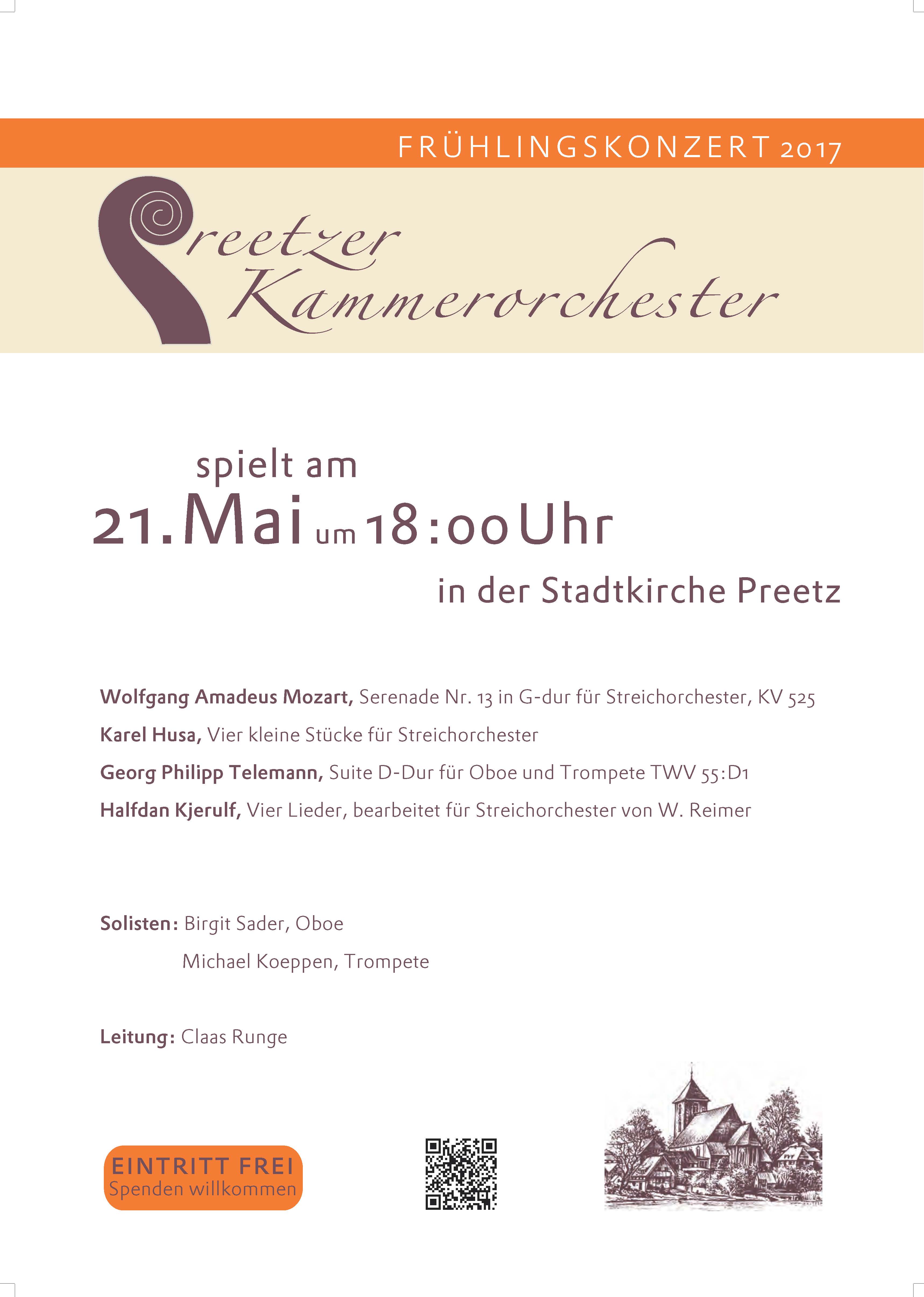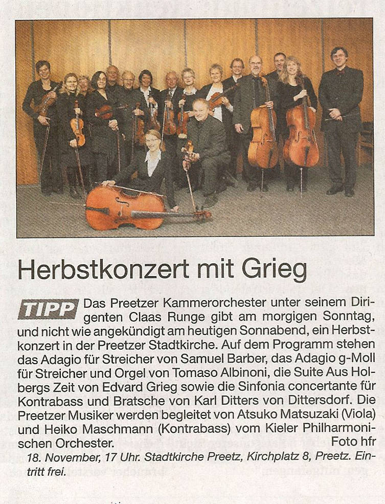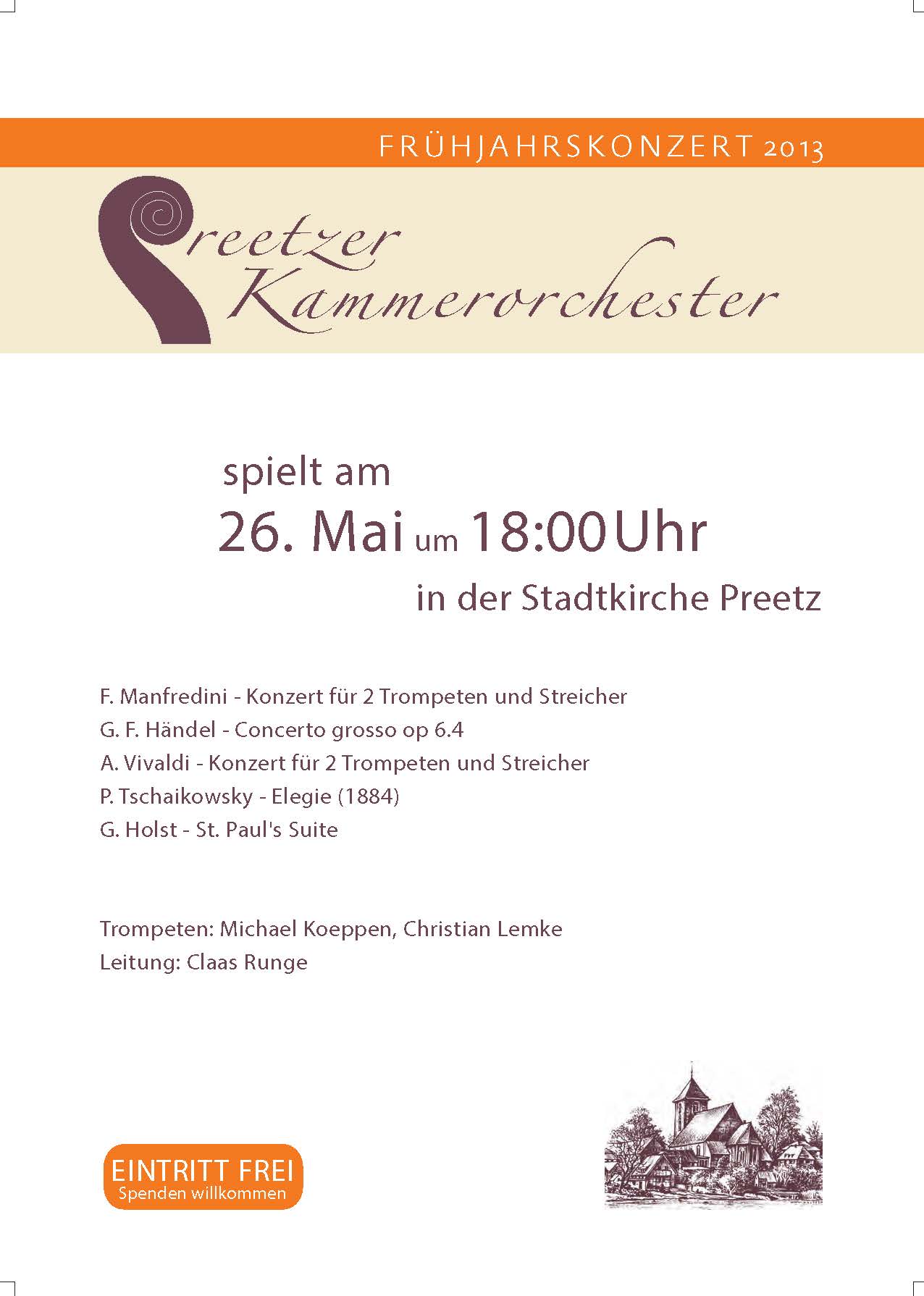 Spendenkonto: Preetzer Kammerorchester, IBAN DE63 2105 0170 1003 6840 22