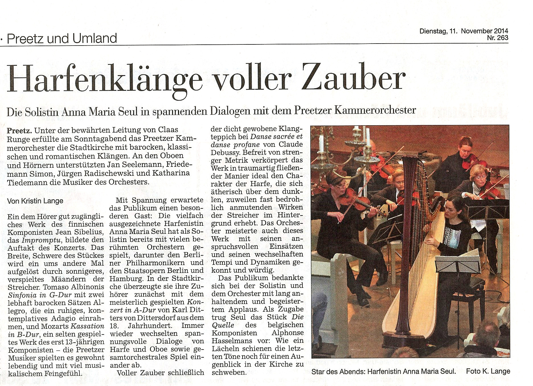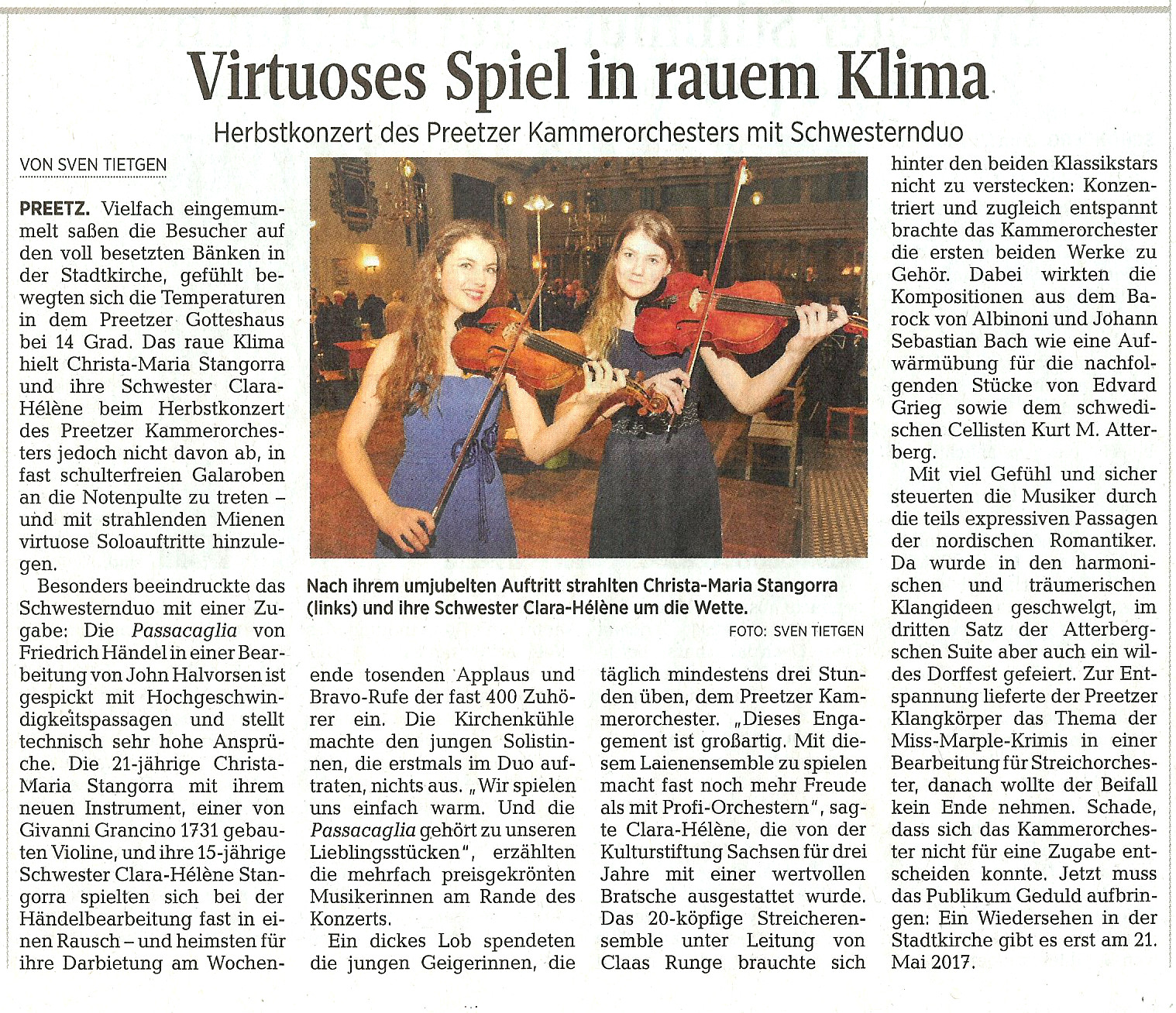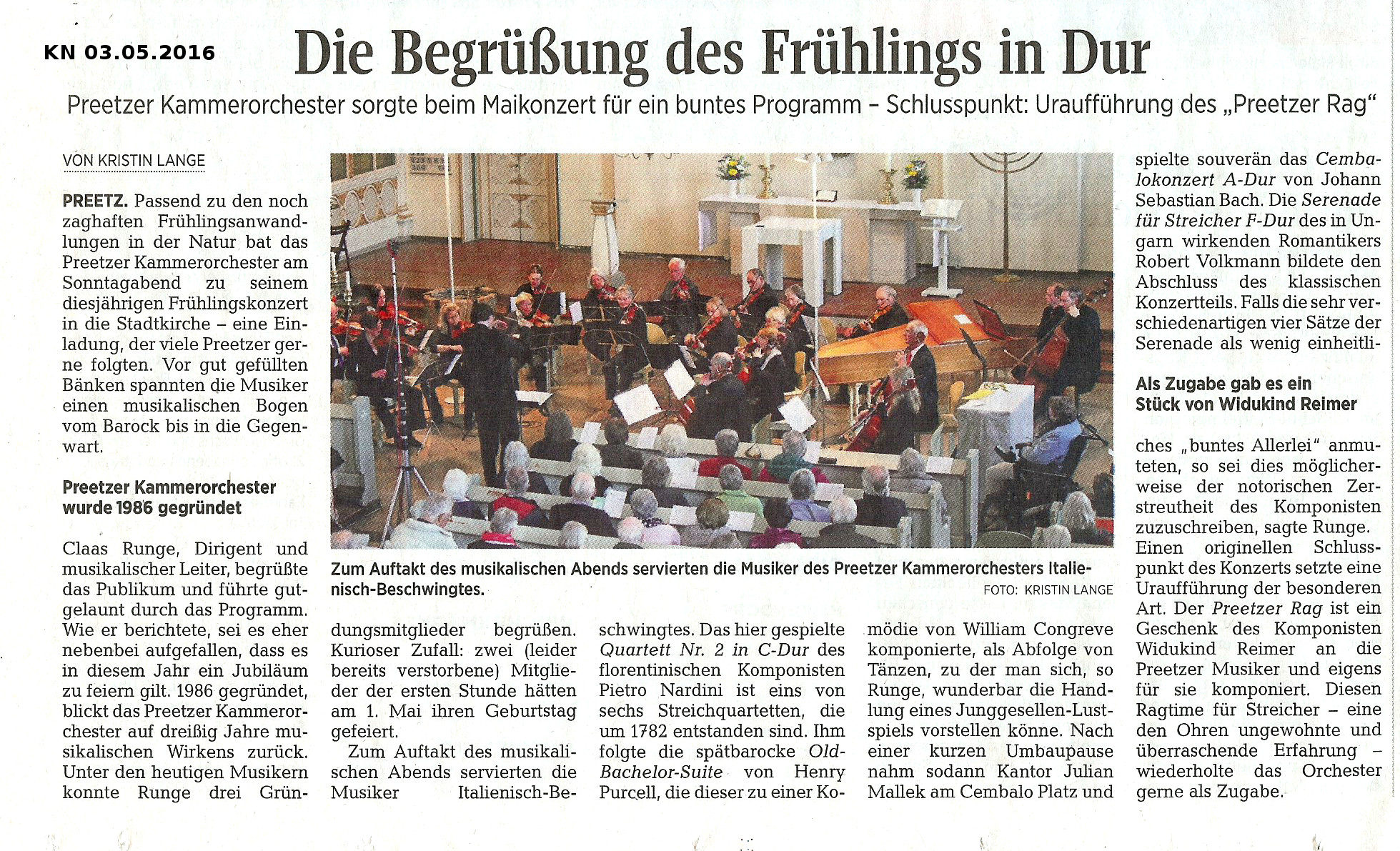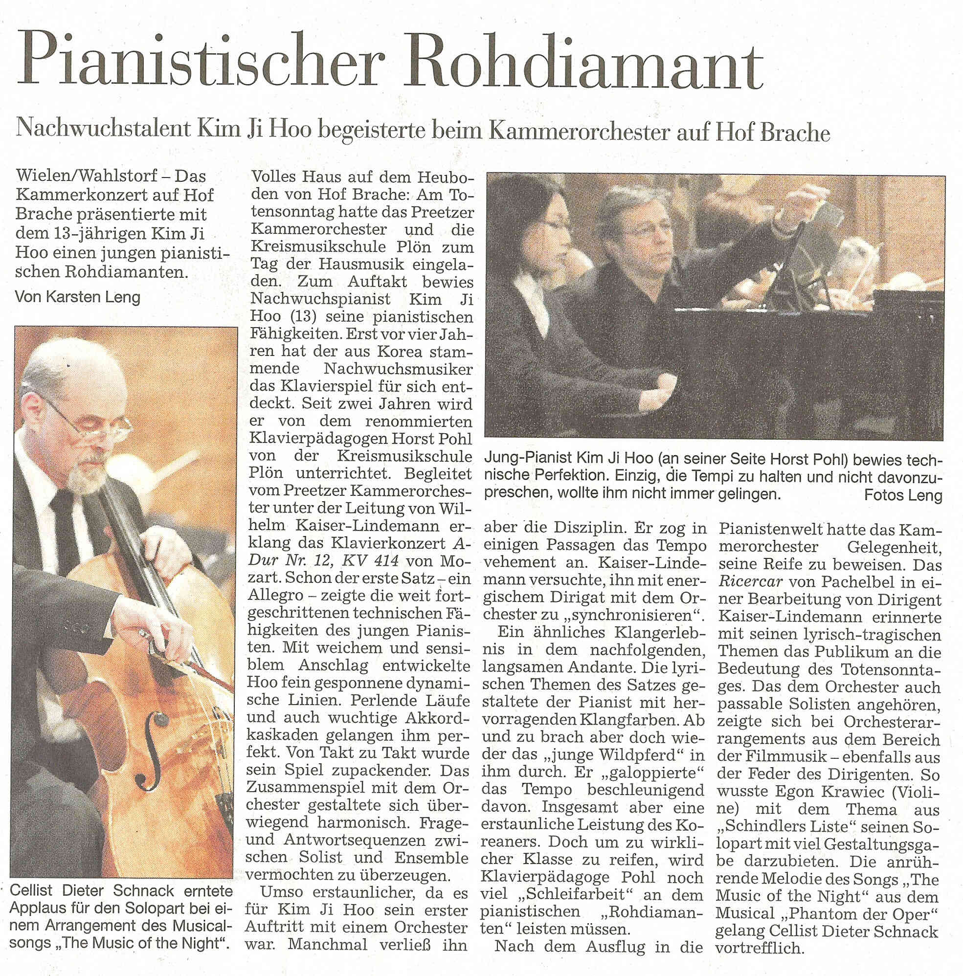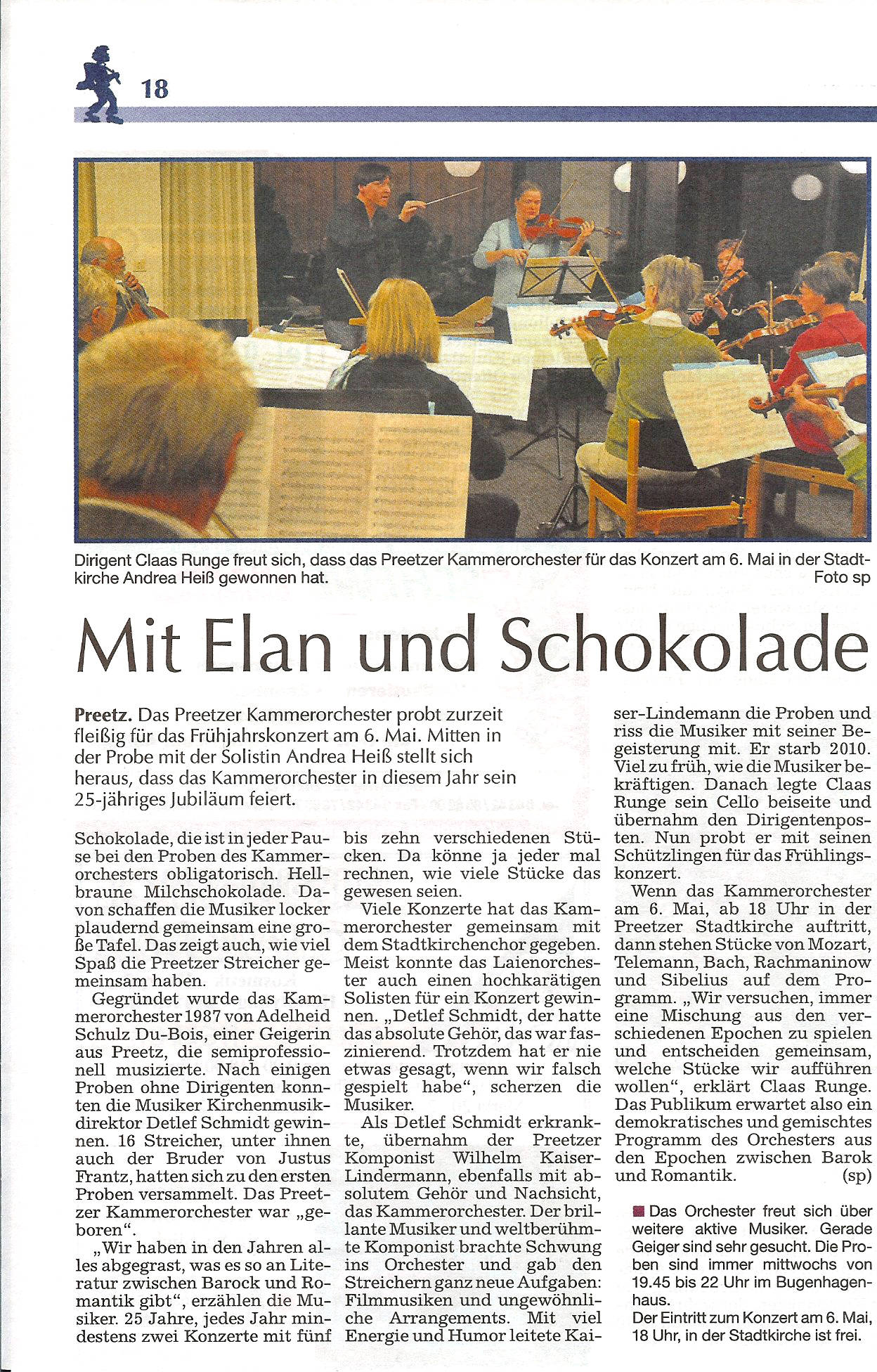 Spendenkonto: Preetzer Kammerorchester, IBAN DE63 2105 0170 1003 6840 22