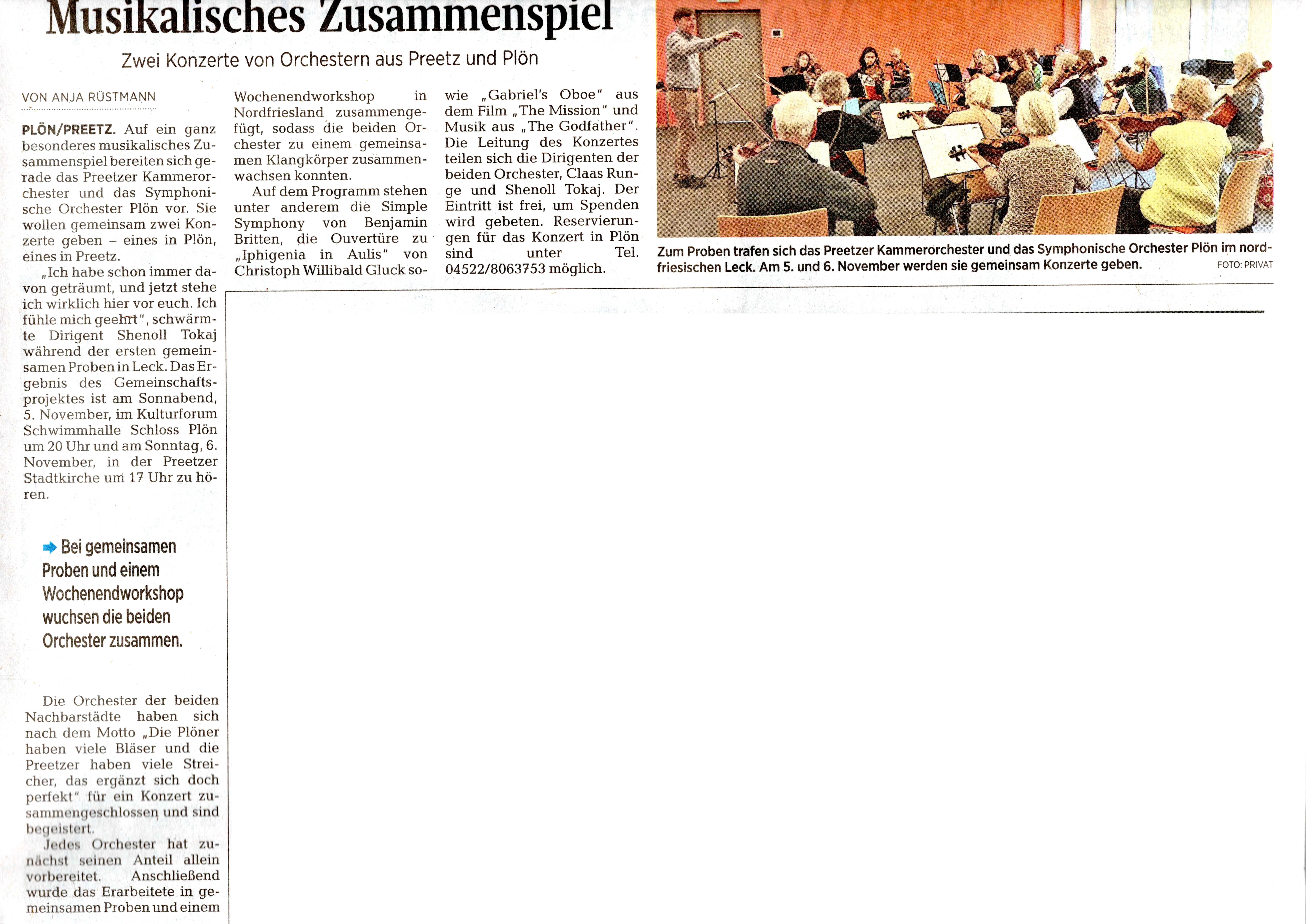 In Zusammenarbeit mit dem Symphonischen Orchester Plön